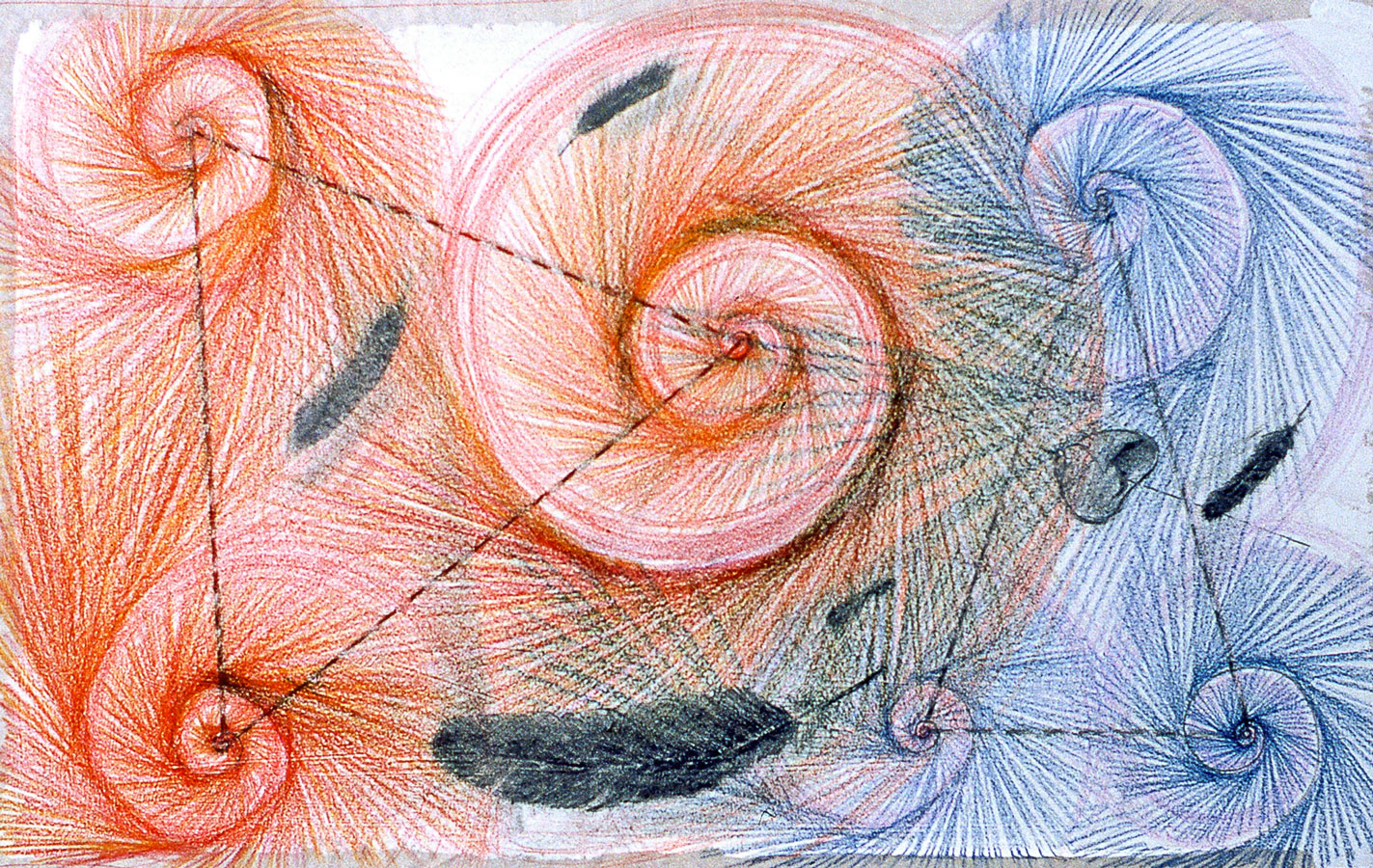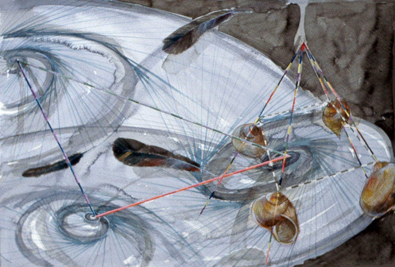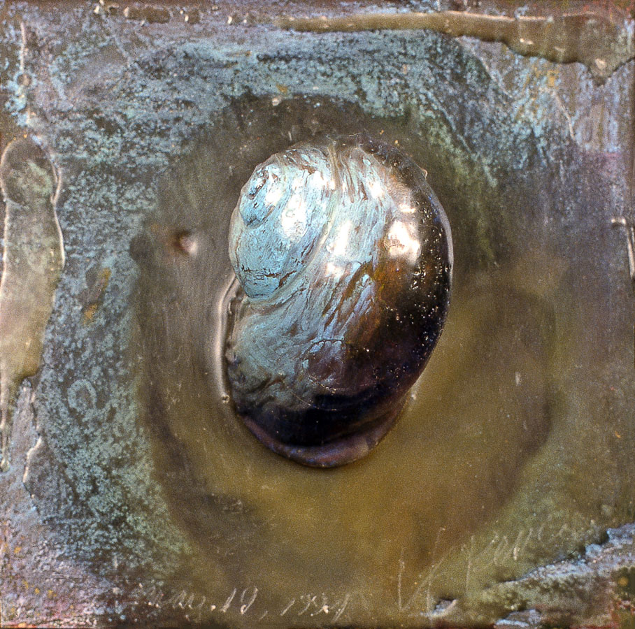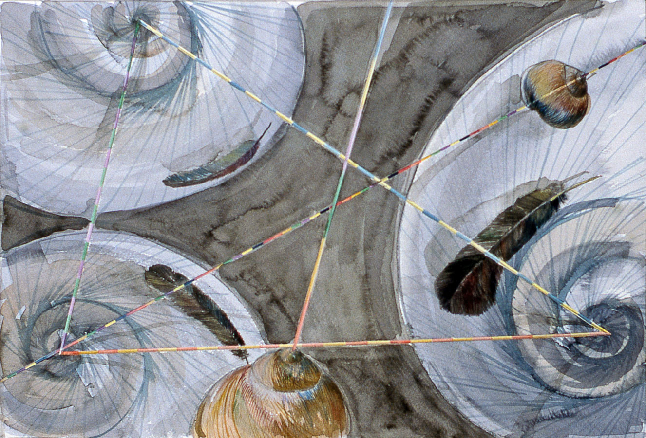 In addition to the religious sculpture the symbols; snail shells, (spiraling forms) segmented rods, feathers and sickles began forming a subjective visual language resulted in deeper understanding of my psycho-spiritual development. I view this process as an essentially necessary purification of the suppressed inner nature of modern humanity.